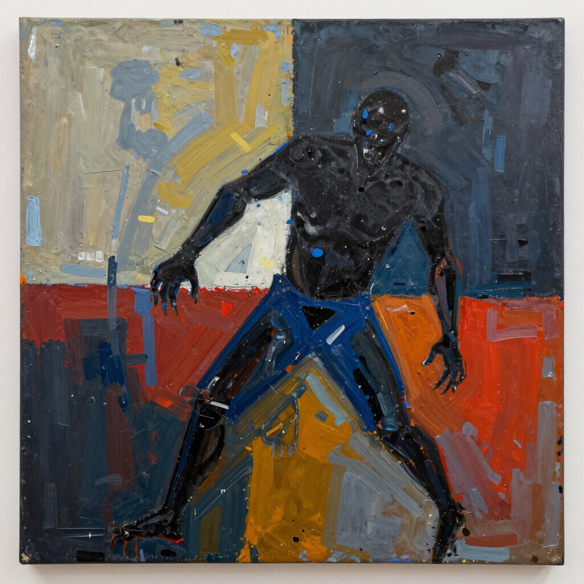 I blend abstract forms with shadowy figures to evoke political tension and mystery.